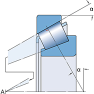 因此在運行期間具有低的摩擦力矩。圓錐滾子軸承的軸向載荷能力隨著接觸角 α 的增大而增加。接觸角的大?。ㄍǔ?10° 至 30°)與計算系數(shù) e 有關(guān)(根據(jù)產(chǎn)品表):e 值越大,接觸角越大。